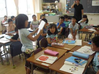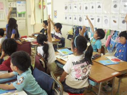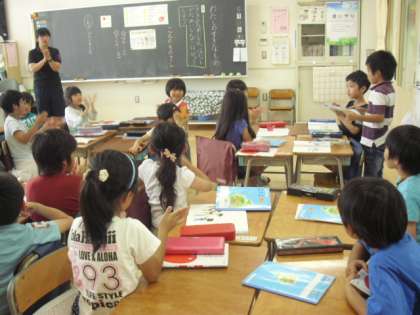 今日は暑い一日になりましたが、午後もしっかり学習に取り組んでいました。1年生の教室ではお話の発表。みんな聞き方名人になって発言している人に体を向け、また話し方名人になって、クラスみんなに聞こえる声で、「私のすきなもの」について話していました。