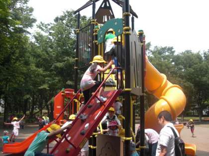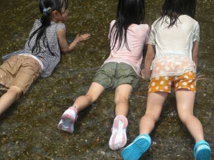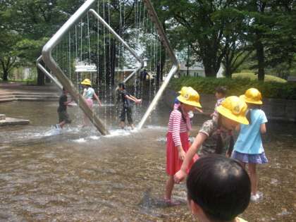 アスレチックも人気でしたが、水辺の広場に子どもたちが集まりました。