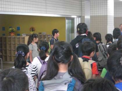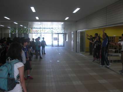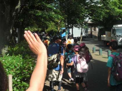 7時30分過ぎには、先生に見送られ、昭和記念公園に向けて出かけていきました。
