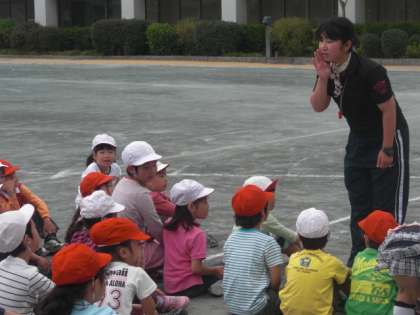 今朝の真鍋学級は、ドロケイ。先生の説明を聞いてから始まりです。(写真:上)