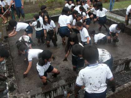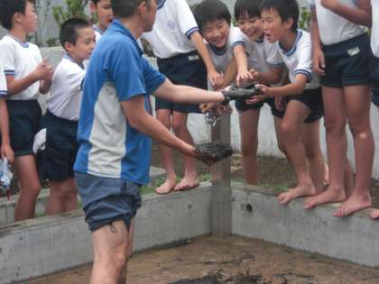 土と水を混ぜて、土を軟らかくすることと、田んぼを整地する目的があります。