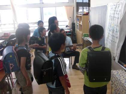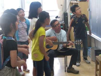 5年3組依田学級からは、ギターの伴奏で歌う子どもたちの声。