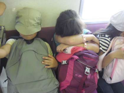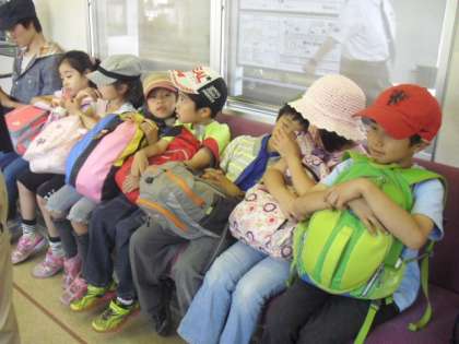 駅のホームで整列し、明大前乗り換えで学校へと帰ります。帰りの電車では、たくさん遊んで疲れたのか元気だった子どもたちが途中からはちょっとお休みモード突入でした。