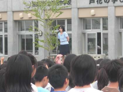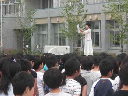 学校長の話は、先週土曜日の下町まつりで、4年生が芦花小ソーランを演じて