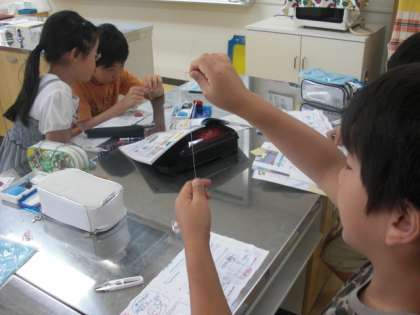 5年生男子が、縫い針の小さな穴に糸を通すのに苦労していました。