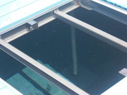 この支柱と、水の浮力だけで、シーズンオフを越したプール。