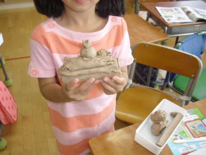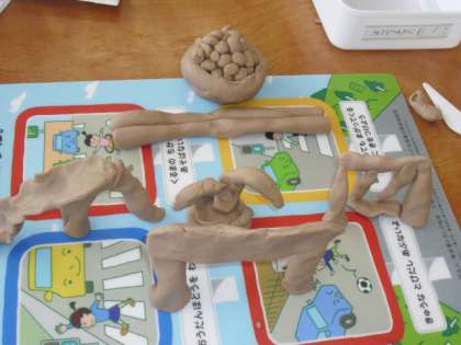 大きなねんどのかたまりをたくさんちぎってまるめて・・・