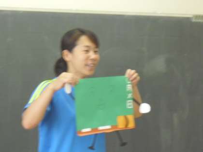 先生のお手製の「黒板君」が登場し、黒板係の子どもが僕(黒板君)をピカピカにしてくれた時のことを話してくれました。みんなお話をしっかり聞いています。