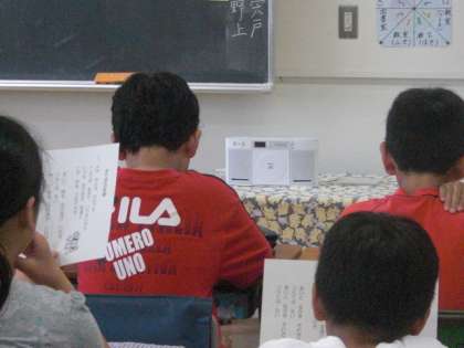 6年1組岡島先生の道徳では、はじめにCDから流れてくる合唱を聴きました。