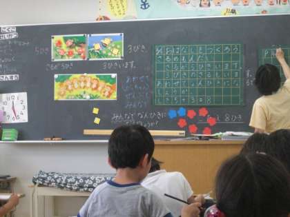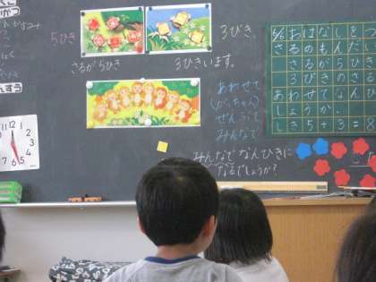 その絵をもとに、算数の文章題を作る勉強をしていました。