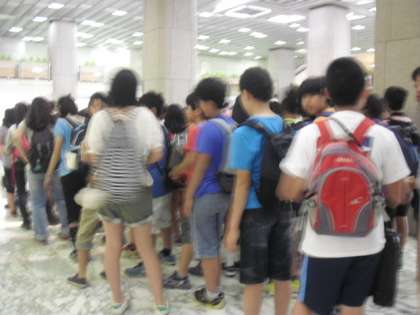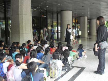 通勤時の混雑した電車にゆられ、日比谷に到着、日生劇場の入口で係の方から諸注意を聞いて入場しました。座席は1階の真ん中で、演技をしている人の表情もしっかり見ることが出来ました。上演中の撮影はできませんでしたが、途中会場のみんなも一緒に歌を歌う場面があり、みんなしっかり参加していましたよ。