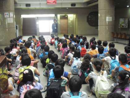 教育センターに到着後、担当の方からのお話を聞いて、2グループに分かれ、プラネタリウムでの学習、郷土資料室での学習を開始しました。