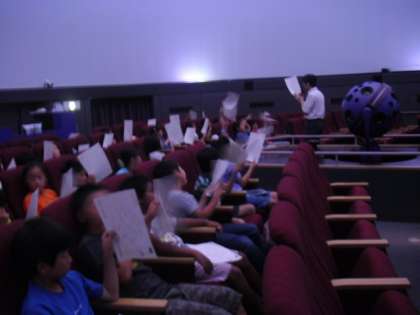 プラネタリウムでは、太陽や月の動き、今夜空に見える星座などについて学習しました。