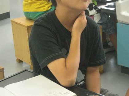 理科「血液の働きを調べよう」で、自分の脈拍調べをしている最中でした。