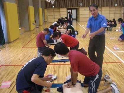 私たちは、救急隊員や医療従事者が到着するまでの間、応急手当を