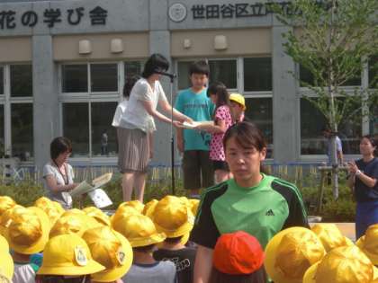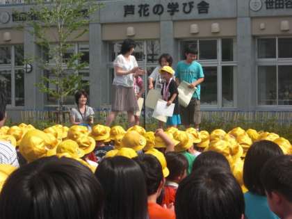 全校児童の前でも、躊躇せず行える心意気に拍手がおこりました。