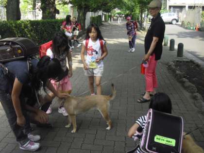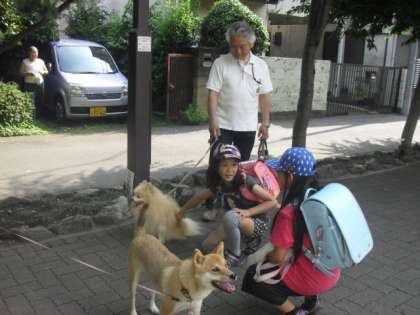 今日もわんちゃんのマッチとマリモのお出迎えで、子どもたちが元気に登校してきました。マッチのご主人さまは芦花小学校の第1期卒業生の松田さんです。本校の同窓会の会長さんでもあります。お会いしたらみんなで元気に挨拶を交わしましょう・・!