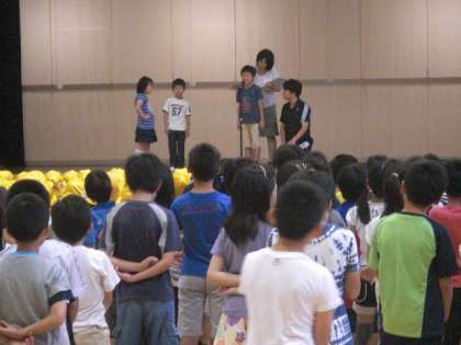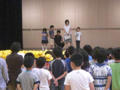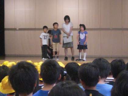全校児童の前で、しっかりと音読し、みんなから大きな拍手をもらっていました。