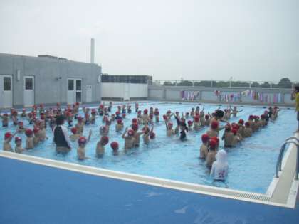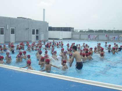 今日は朝、雨も少し降っていましたが、1年生のプールの時間には、気温水温も上がり、プール開きができました。小学校での初めてのプールです。みんなわくわくしながら、でも先生の注意をしっかり守って、水遊びを楽しんでいました。