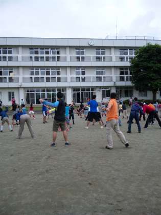 おはようございます。こちらは曇りで残念ながら今日も今は富士山の姿が見えません。今日は朝会を宿舎の園庭で行いました。