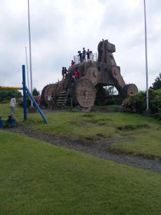 天気も回復し太陽が出てあつくなってきました。烏山小学校のみんなとお弁当タイムの後、アスレチック広場の遊具で運動です。ちょっぴりこわそうな遊具でもみんなとならチャレンジ・・いい汗かいていました。この後は、バスに乗ってそれぞれの学校に帰ります。