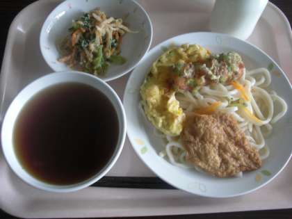 今日のうどんは、生うどんで、給食室で学年ごとにゆでました。