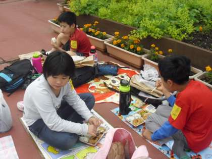 烏山小学校のみんなと一緒にご飯を食べて、記念写真をぱちり・・・