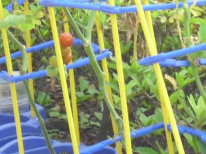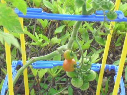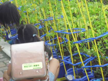 帰り道、自分たちの育てているミニトマトが気になります。今日もランドセルを背負ってどうかなと様子を見にきていました。赤く色づいたミニトマトを発見して嬉しそうでしたよ・・・。