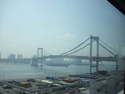 いよいよバスに乗って出発です。目指す第1の目的地は水の科学館。左に東京タワーを見て、レインボーブリッジを渡って目的地へと向かいました。