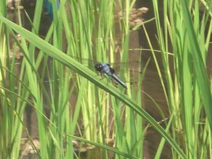 稲穂に留まる糸トンボ、シオカラトンボ。