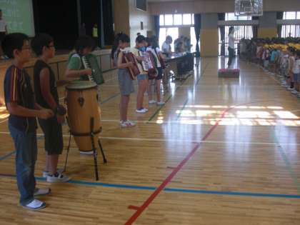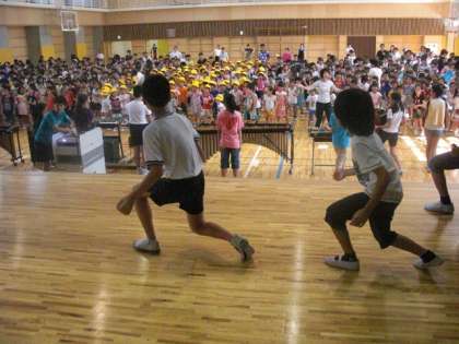 1年生から、6年生まで、サンバのリズムにのって、歌い、踊りました。