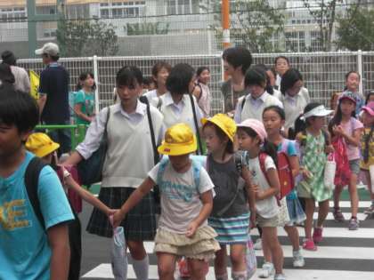 同じ地域に住む小学生と中学生が一緒に下校することで、