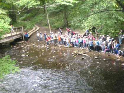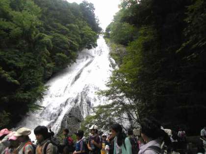 全員元気に湯滝に到着しました。滝の音が大きく聞こえます。水辺で少し水遊びをしてから湯の湖に向かいます。