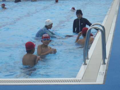 自分の課題に合わせての特訓開始、平泳ぎの芦の練習を個別に教わったり、長く泳げるよう呼吸の仕方を見てもらったり・・・、この夏も水泳が上達することでしょうね。頑張れ〜