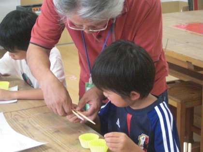 松田様のアドバイスで、左手でつぶつぶ掴みに挑戦している子もいました。