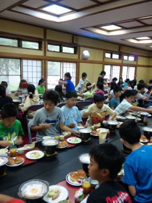 ぐっすり眠り、朝のラジオ体操でしっかり起きているのか、昨日の朝よりもみな、食が進んでいる様子です。この後は荷物整理 部屋の片付けをして、日光江戸村へ向かう準備をします。