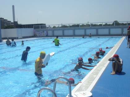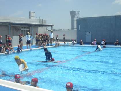 気温も水温も上昇し、ますます水の中が気持ちよい水泳日和になってきました。3,4年生は63名の参加者です。3,4年生も検定です。平泳ぎのかえる足に何人もが挑戦、足の裏で水をとらえてうまく推せるようになれば合格です。練習の成果が発揮できたでしょうか・・・タイムにもチャレンジしていて、水しぶきを上げ、ぐんぐんとプールの中を進んでいました。