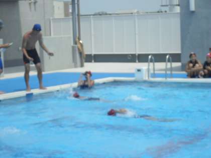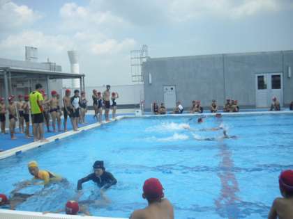 5,6年生の参加者は60名でした。かえる足の特訓を受け、各自の級にチャレンジです。水しぶきを上げ50mを勢いよく泳ぐ姿も見ることができました。ゴールで皆の声援も飛び交っていましたよ・・・・