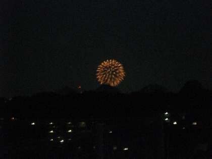 ガスタンクの向こうに花火が上がるのまで見えました。