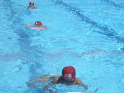 青空のもと3,4年生の参加は89名です。1,2年生同様、明日の検定日に向けて最終練習に励んでいます。長距離に挑戦する児童は息継ぎに気をつけながら、頑張っていました。合格してテープをもらい、とても嬉しそうでしたよ・・・・。