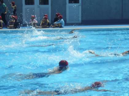気温は31度に上昇、3,4年生の回は102名の参加者でスタートしました。平泳ぎのかえる足になかなか苦戦している児童が多く、指導者も個別指導の場面では足の裏で水を押す練習を繰り返してきました。3,4年生の体育「浮く・泳ぐ運動」では、いろいろな浮き方やけのび、補助具を使ってのキックやストローク、呼吸をしながらの初歩的な泳ぎをします。初歩的な泳ぎとは、高学年での水泳の前段階となるものです。自己の能力に適した課題をもち、動きを身につけるための練習に、引き続き取り組んでいってほしいです。今日の検定では3,4年生の目標以上に頑張った児童もたくさんいました。