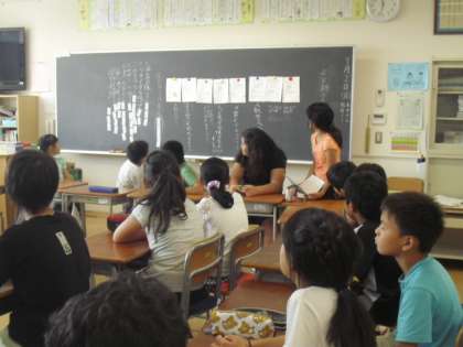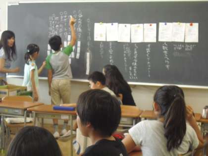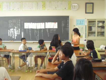 5年生の教室でも係決めが進んでいました。まずは1学期の係の表を貼りだし、1学期の仕事内容や人数が適切であったかなど自分たちの活動を振り返り、それをもとに、2学期の係の種類や必要な人数を決めていました。自分たちが行ってきたことをきちんと確認し、2学期はさらによりよい活動にしていけるように改善して決めています。大事なことですね。みんなが活き活きと活動している場面に2学期もたくさん出会えることを私も今から楽しみにしていますね・・・・。
