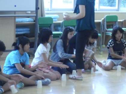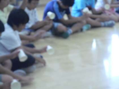 高学年の音楽の「鑑賞」では、曲想とその変化などの特徴を感じ取って聴く活動を行います。音楽室で鑑賞曲を聴きながら、みんなで紙コップを使って8拍子のリズムを刻んでいました。ところが、途中でなぜか8拍子のリズムが刻めなくなります。よく聴きながら拍を確認すると、途中でリズムが変化し6拍子になっている場面でした。「あれっ」という不思議から注意を向け、その理由を突き止めるのに、リズムを実際に刻みながら実感させていきました。先生方が気付かせたいことにどのような活動をさせたらよいのか考え、授業を構成しています。活動を通して様々なことを学ぶ芦花小学校の子ども達です。
