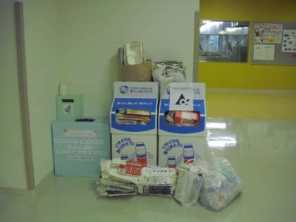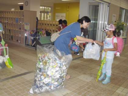 リサイクル委員の方が朝から子どもたちや保護者の方が持ってきてくださったアルミ缶を受け取ってくださいました。皆さんのご協力により、紙パックも、ペットボトルのキャップも集まっていますね。「協力」の「協」という文字の中にも「力」の文字がいくつも入っています。皆さんの力が集まって、大きな力になっています。いつもありがとうございます。そしてこれからもどうぞよろしくお願いします!