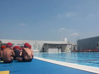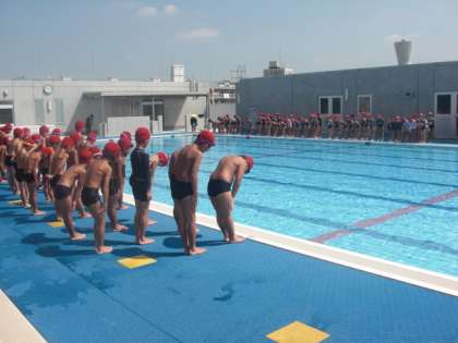 あっぱれ秋晴れのもと、1年生最後の体育「水遊び」です。