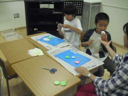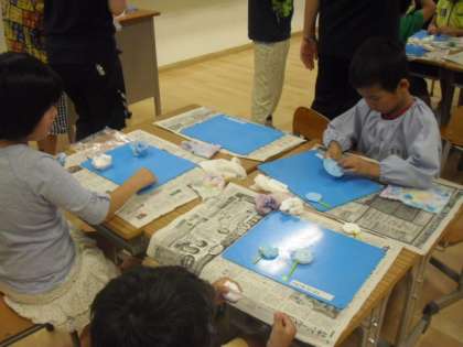 ひかり学級では、紙粘土に色を付け、細長く伸ばしてから、くるくると巻いて・・・・ぺろぺろキャンディーを作っていました。色あざらかなキャンディーが並び、「できました〜」と嬉しそうに見せてくれました。
