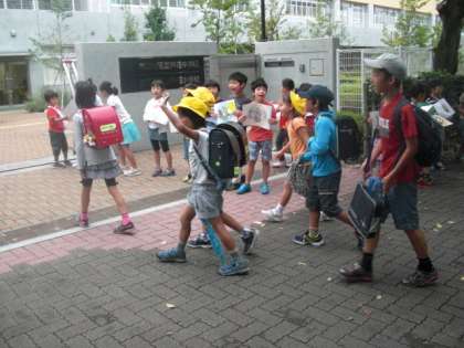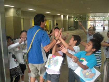 大きな声、ハイタッチあいさつなど、一日のよいスタートを