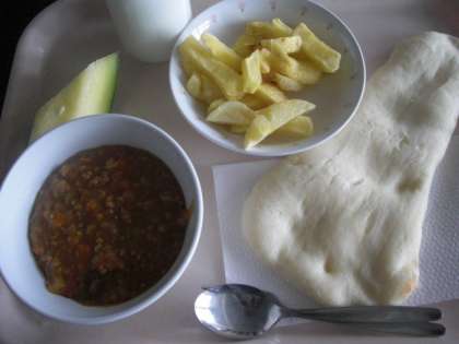 今日の献立には、子どもたちの人気メニュー、フライドポテトが