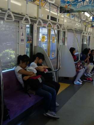 電車に乗ったら、元気だった子供たちも、ちょっと疲れが出てきたのか、お休みモードに突入し始めました・・