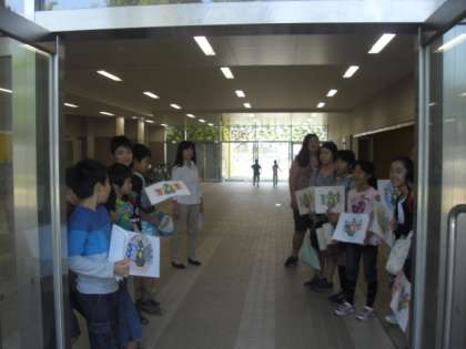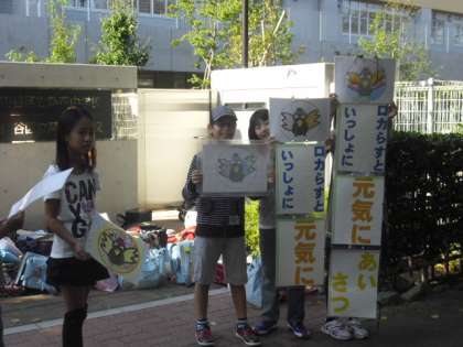 数年前の先輩から引き継がれた「芦からす」の絵カードを胸に、「芦からす」と、一緒に元気にあいさつ・・・の言葉も掲げて・・・・。元気な声がこれからも響きますように・・・